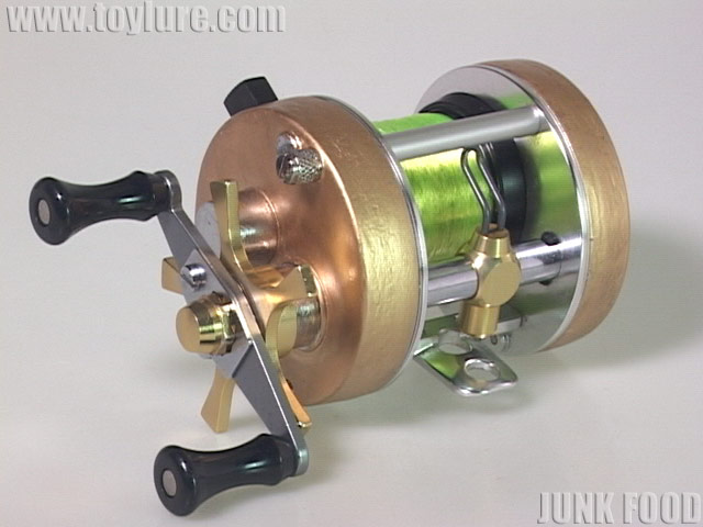 カップリペイント元は76年物シルバーです。フレーム、スプール、メインギア、ハンドル周りなどアベイルパーツでカスタム、ハンドルはオールドのショートツインハンドル元フレーム付、スプリングワッシャー、ブレーキなし